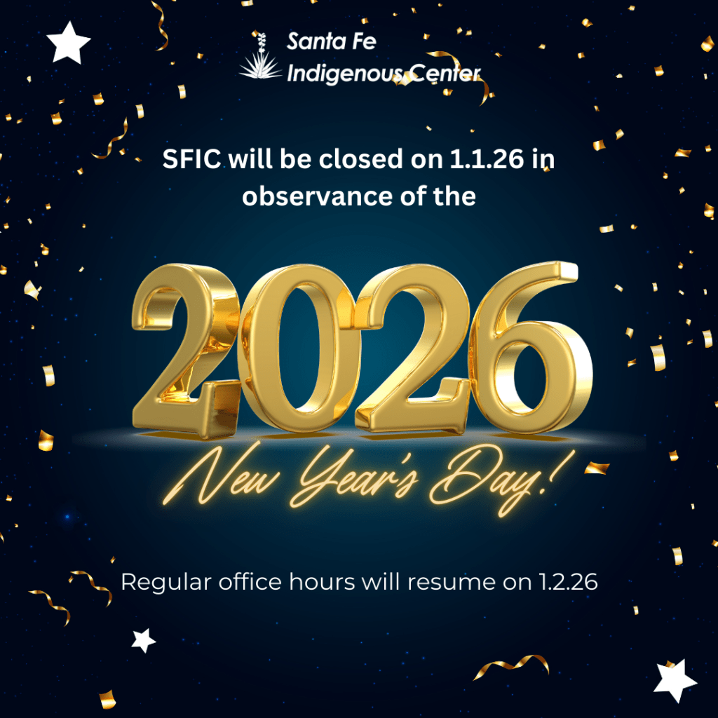 In observance of New Year’s Day, SFIC will be closed. We are grateful for the privilege of serving the Native community of Santa Fe County and look forward to continuing this important work in the year ahead. Wishing everyone a happy and healthy New Year!