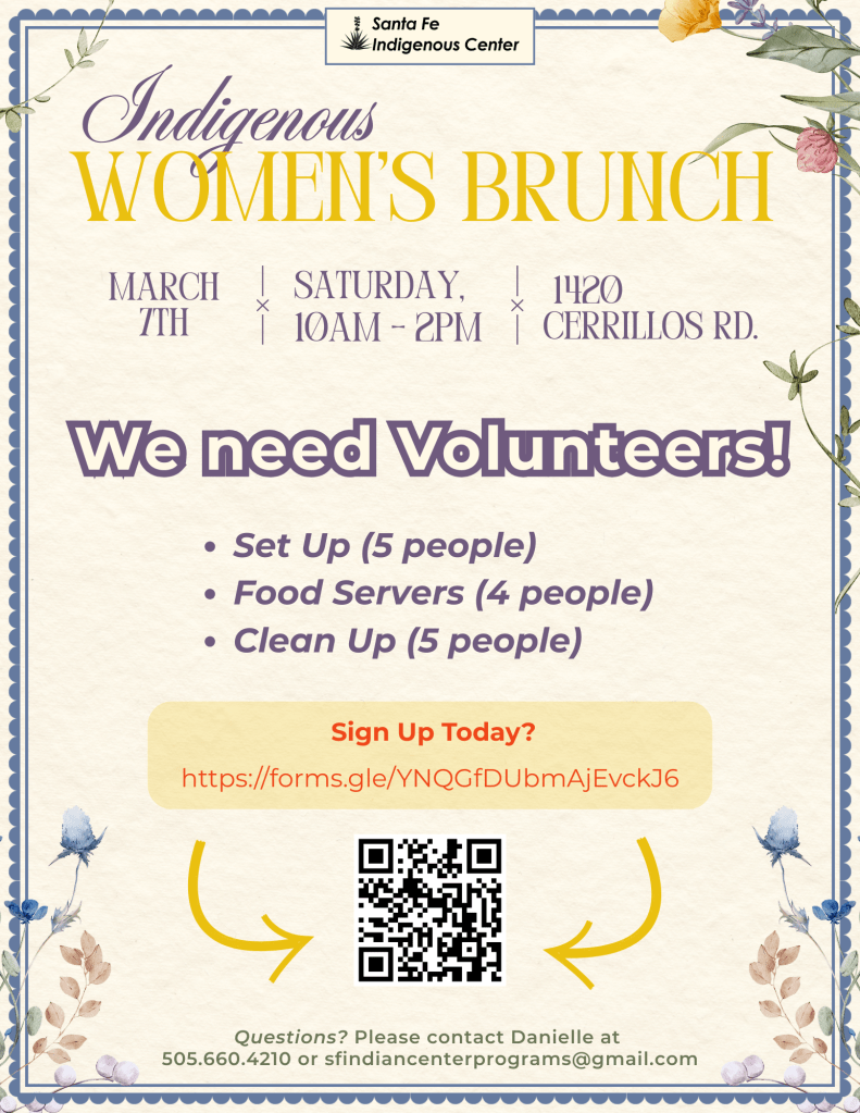 We’re excited to see so much interest in our annual Women’s Brunch at the Santa Fe Indigenous Center! At this time, RSVP is now closed, and we are no longer accepting registration forms.